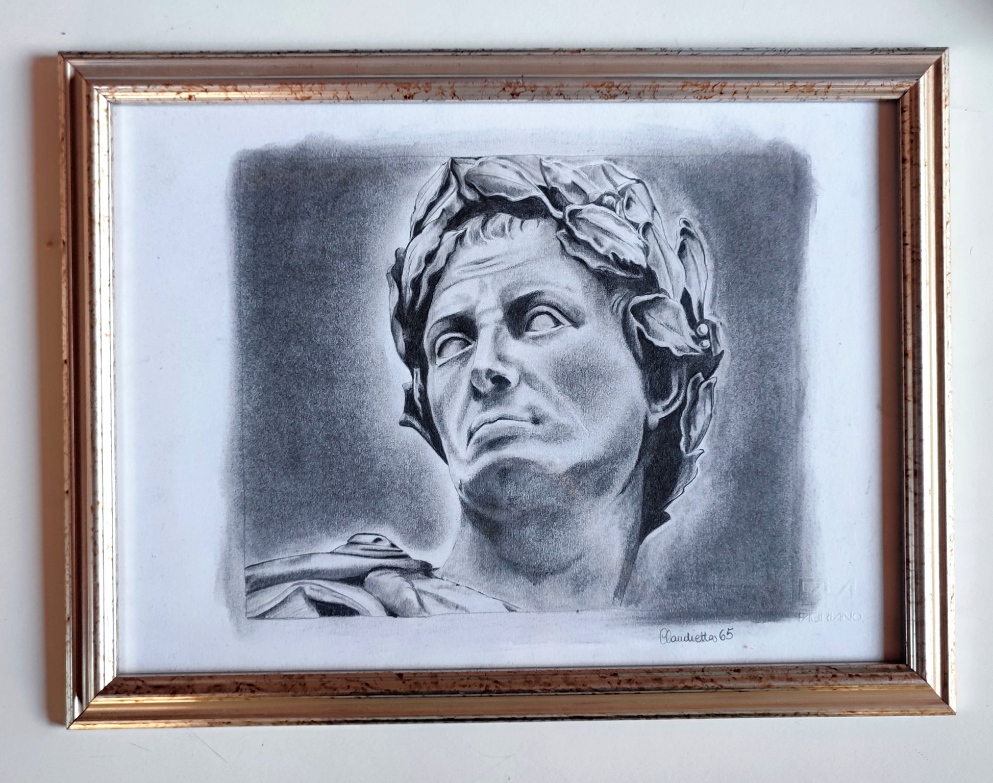 Riproduzione a matita e polvere di grafite per questa raffigurazione importante di Giulio Cesare. Opera ricca di particolari e molto elaborata.