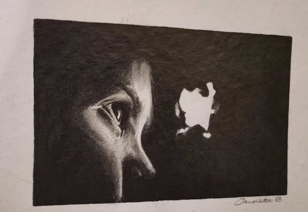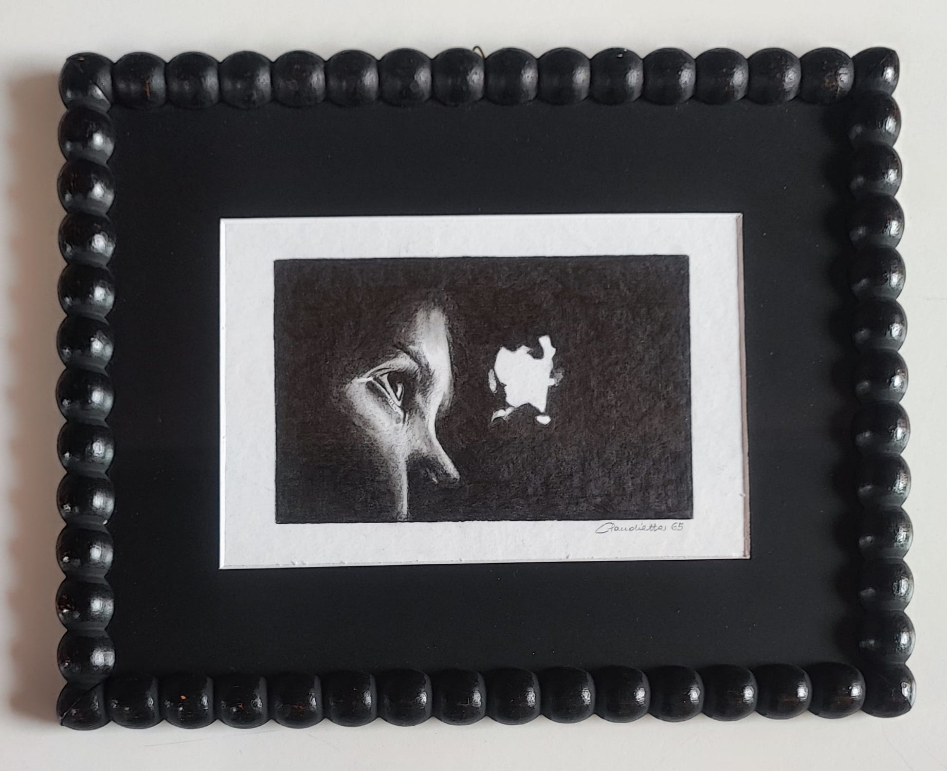 Nel prezzo è compresa la cornice artigianale interamente modellata a mano con passepartout nero per esaltare il contrasto protagonista di questa opera. Cornice in vetro. Estremamente particolare