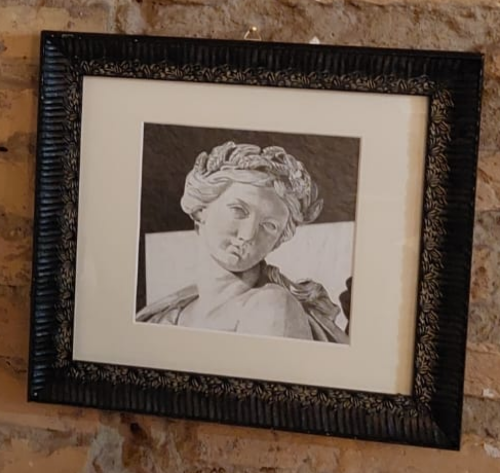 Riproduzione a matita e polvere di grafite su carta ruvida per "L' abbondanza" , particolare della celebre statua posta dietro Nettuno nella meravigliosa Fontana di Trevi a Roma. Scolpita da Federico della Valle datata 1762.