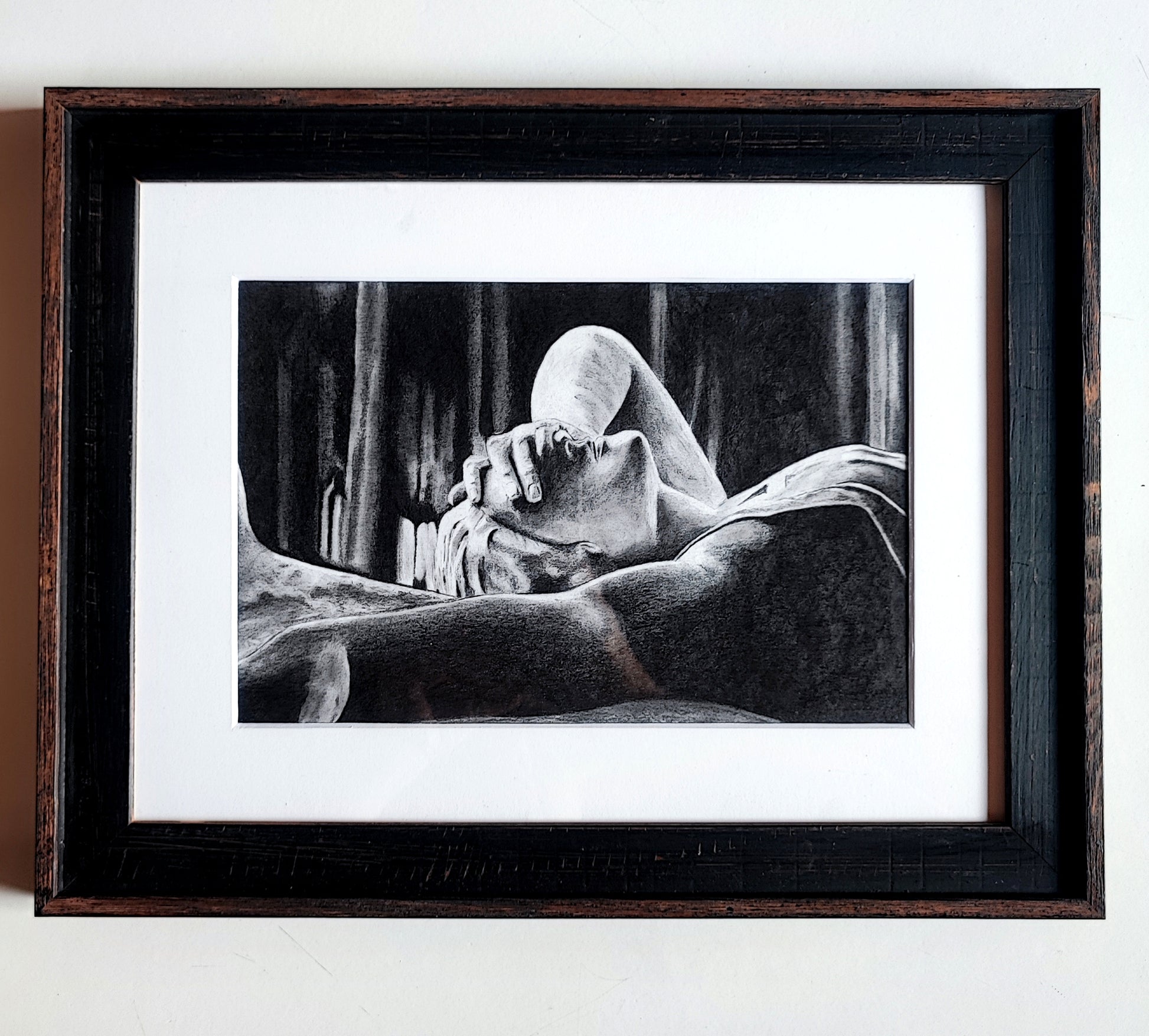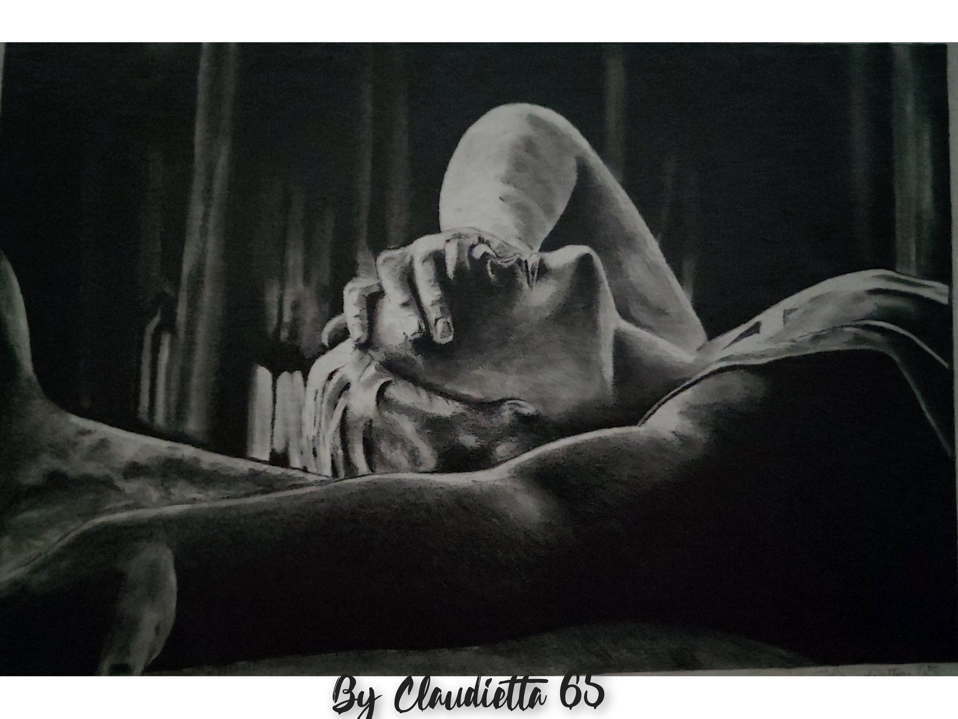 Riproduzione a matita su cartoncino semiruvido per un particolare di un' opera eccezionale che fa parte del patrimonio culturale d' Italia. Lo scultore Onorato Toso ha realizzato questa statua raffigurante un angelo caduto, nel 1910. La statua si trova nel meraviglioso cimitero monumentale di Staglieno a Genova, sdraiato sulla tomba della famiglia Ribaudo.
