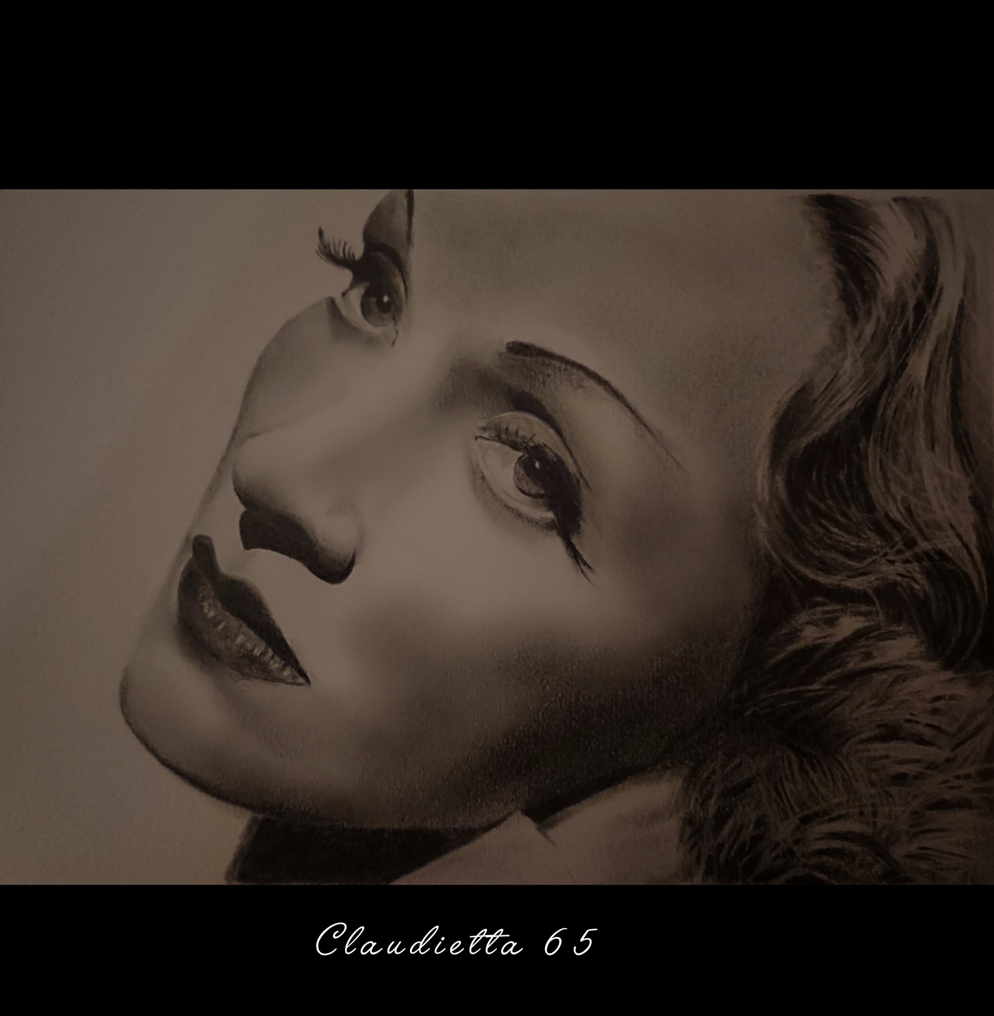 Ritratto a matita e polvere di grafite su carta ruvida per questa icona del mondo cinematografico della prima metà del '900.