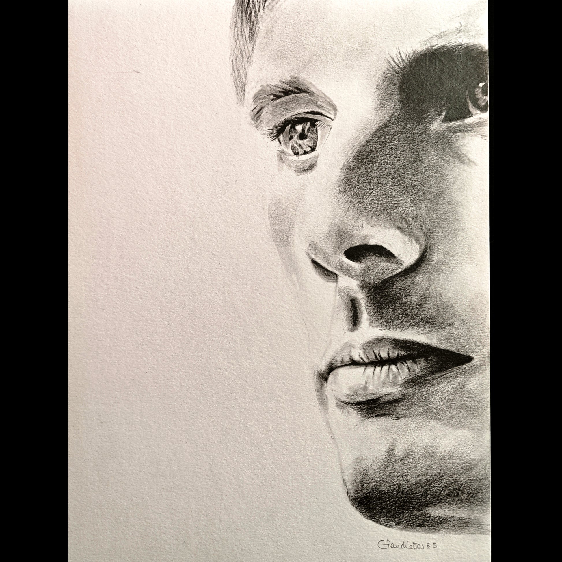 Per i fan di questo splendido e bravissimo attore si propone un ritratto molto particolare a matita e polvere di grafite su un supporto di eccellente qualità semiruvido.